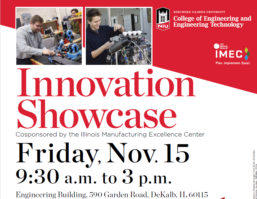DeKalb, IL – Innovation Showcase at Northern Illinois University’s College of Engineering and Engineering Technology (CEET) on Friday, November 15 will spotlight artificial intelligence (AI) and...